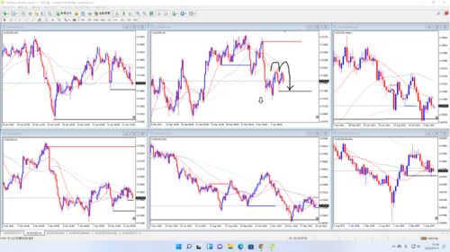 こんばんは😄 本日はオーストラリアドルです。 現在日足は横ばい・4時間足は下降トレンドです。 4時間足ではレジサポライン付近にてWトップを作っています。 そのWトップのネックラインと20MAを下回るのか? 後本日、24:00にパウエル米連邦準備理…